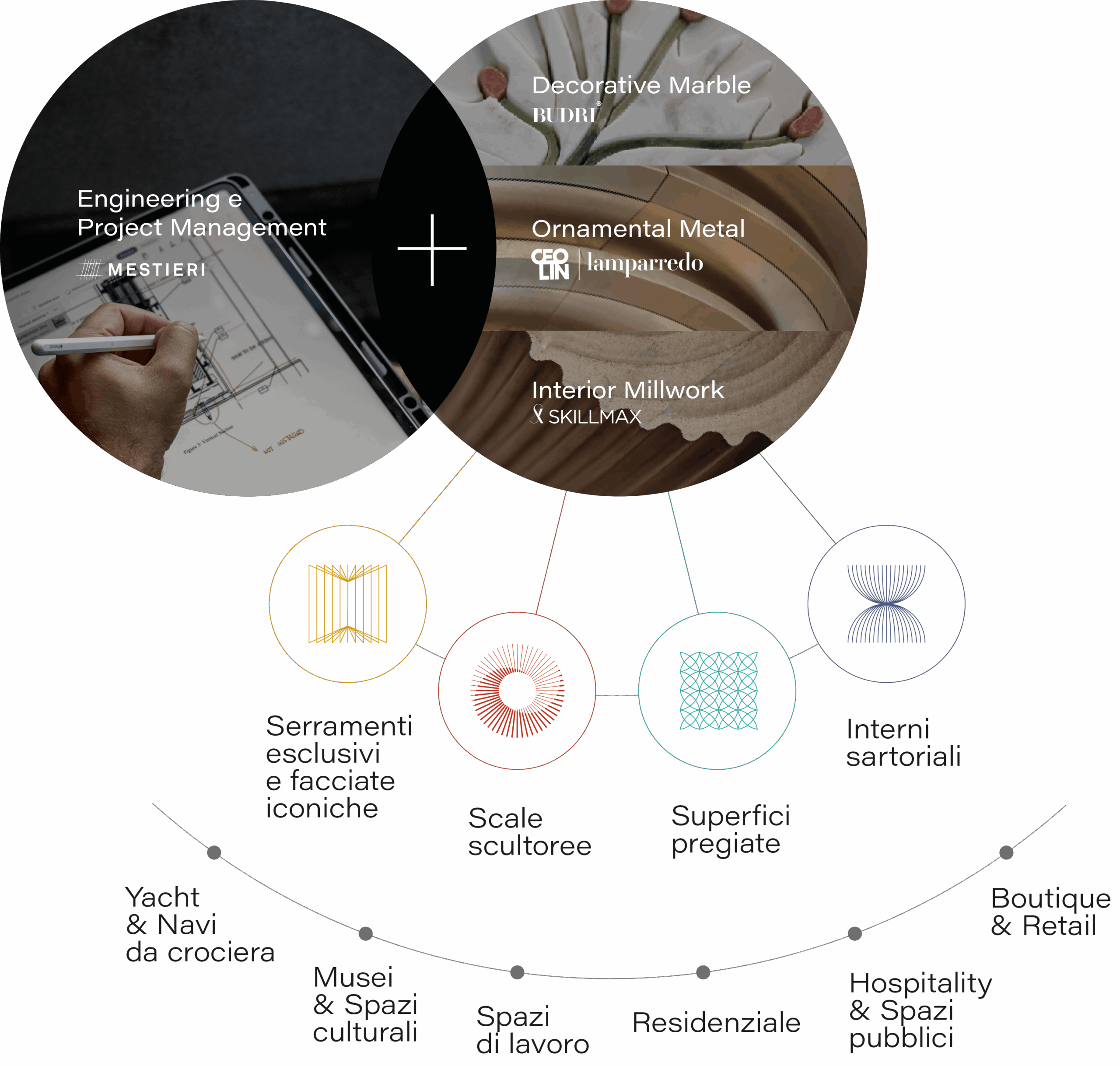 Ogni opera di Mestieri nasce da una ricerca approfondita: lo studio di materiali, tecnologie e innovazioni . alla base di prodotti dall’elevata resa estetica e prestazionale. L’ufficio tecnico si occupa dello sviluppo ingegneristico dei componenti, della definizione dei sistemi applicativi in cantiere e delle verifiche statiche, strutturali e dimensionali del sito tramite 3D scan. Le idee progettuali vengono così tradotte in modelli precisi, pronti per la produzione e l’installazione.